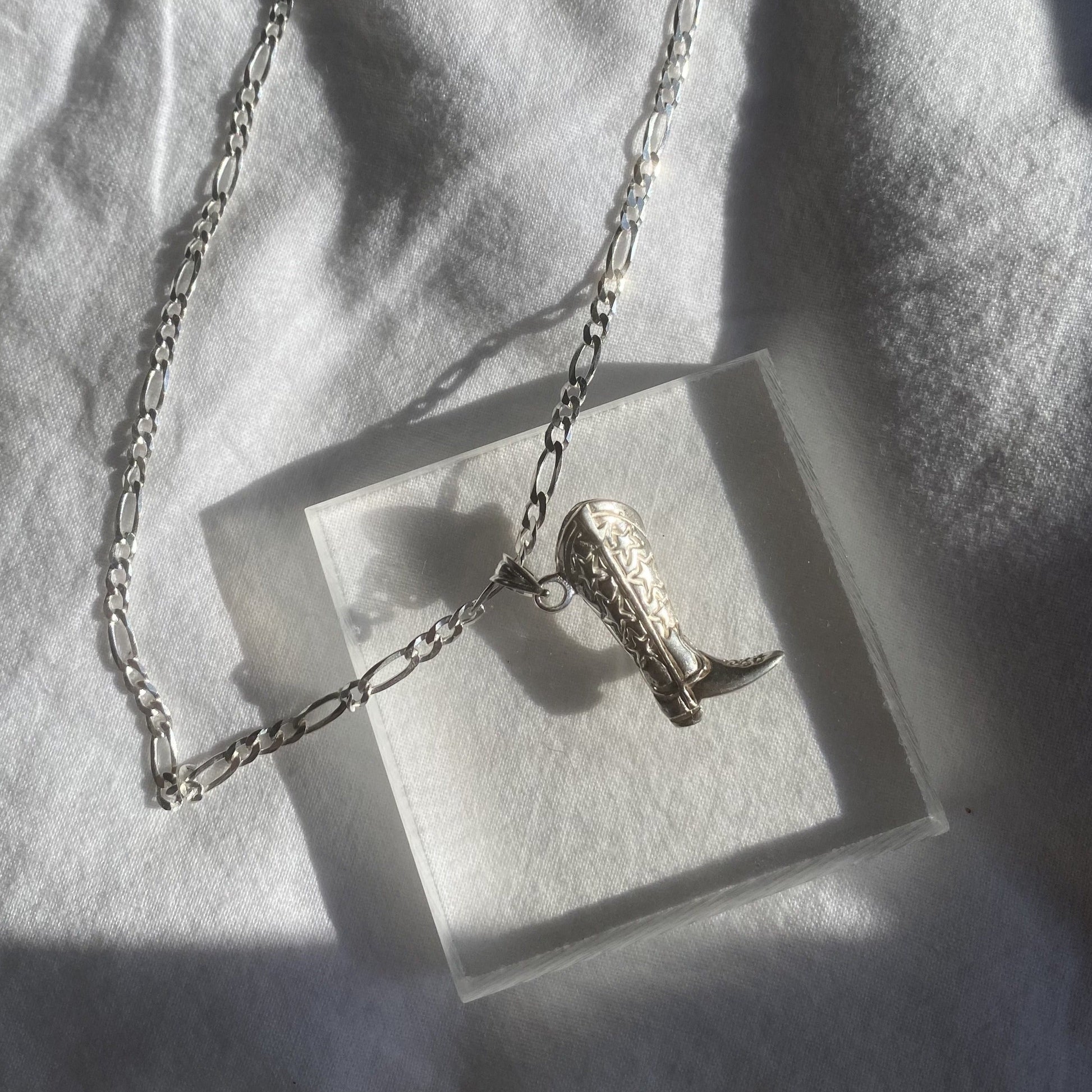 Carved cowboy boot on a clip-on bail.